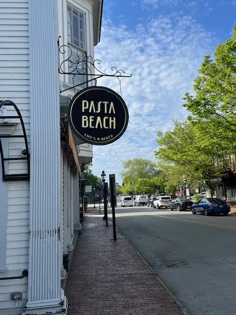 Occupying a restored storefront at 138 Bellevue Avenue, Pasta Beach shares the block with the Audrain Auto Museum and sits a short walk from the Tennis Hall and Redwood Library. Bright awnings, an open kitchen, and Torino-designed straw lamps set an airy, modern tone. The kid lineup sticks to penne (butter, pomodoro, or meat sauce) or a pizza, while parents twirl house-made pasta or split a Margherita pie.