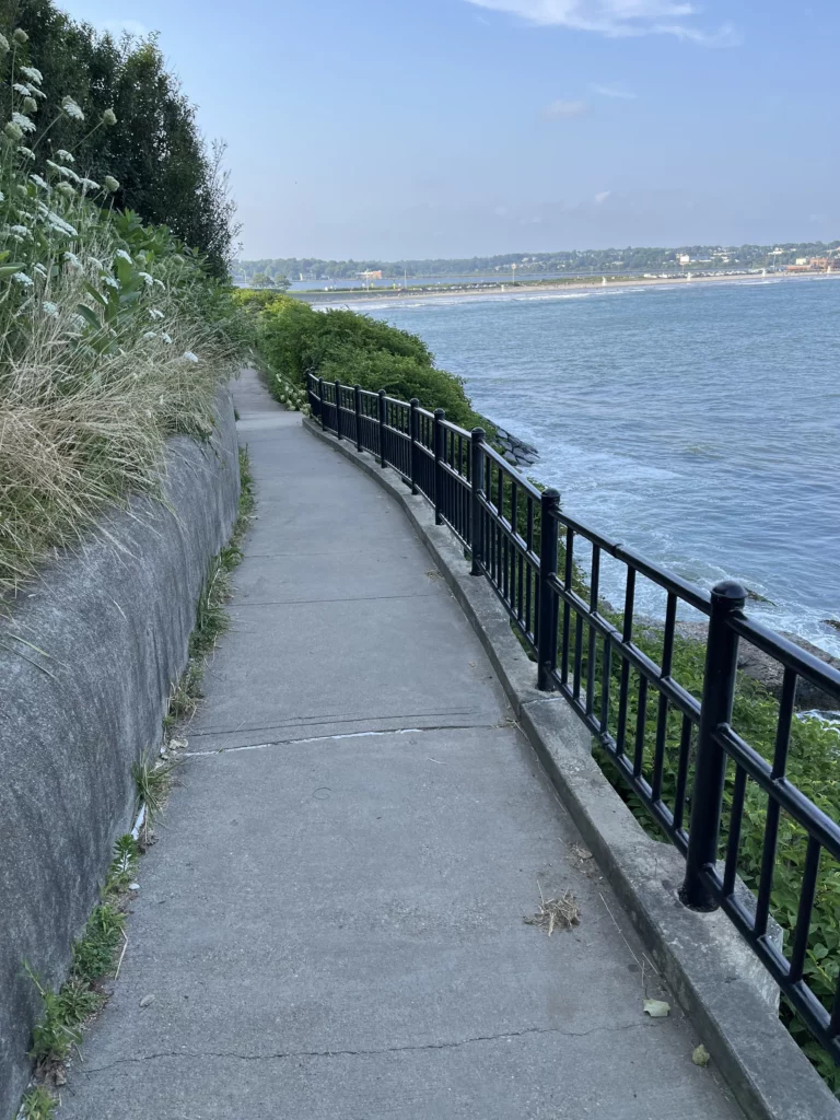 For those with limited time, the section from Narragansett Avenue to Ruggles Avenue is highly recommended for its views. Parking can be found at Easton’s “First” Beach (175 Memorial Blvd.) or Forty Steps (300 Narragansett Ave.). Dogs are allowed on a leash, but visitors should be mindful of poison ivy. Bicycles and baby carriages are only suitable for the north end of the walk. The walk typically takes about roughly 2.5 hours to complete.