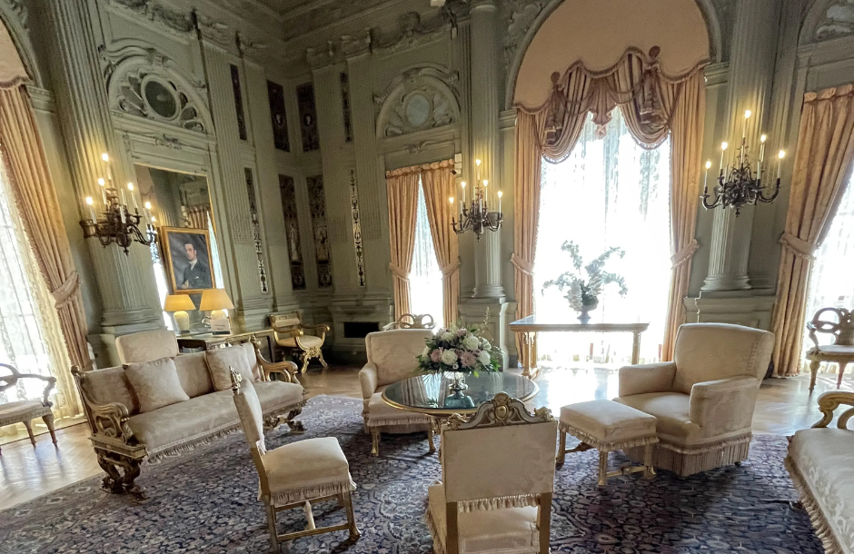 The Morning Room at The Breakers is proof that even a 70-room, 138,000-square-foot “cottage” still needed a pocket of intimacy: a sun-splashed retreat where Cornelius Vanderbilt II’s family could enjoy their summer mornings and prepare for a full day activities. Built between 1893 and 1895 and assembled from pre-fabricated French components by Jules Allard & Sons, the room faces east so that platinum-leaf wall panels, depicting the classical Muses, catch the first rays of dawn and scatter them like liquid silver.
